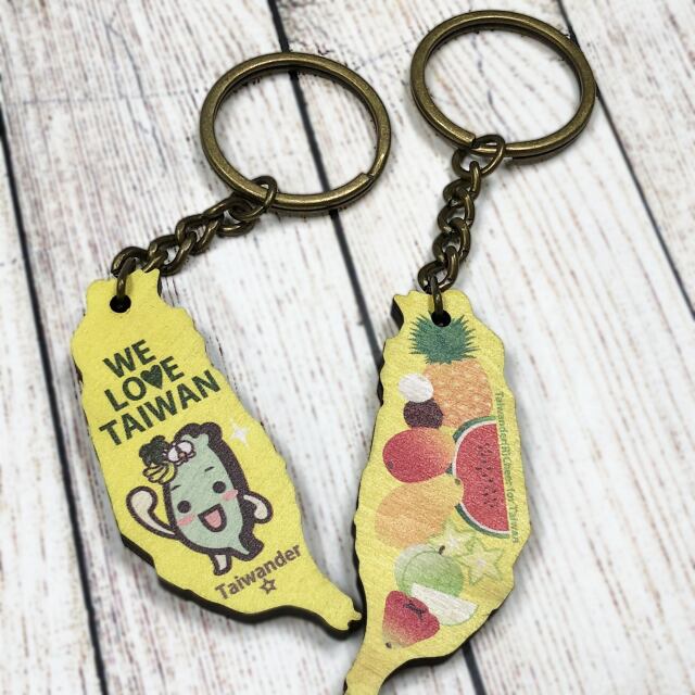 タイワンダー☆グッズに、新しいキーホルダーが仲間入り! 完全Made In Taiwan、土に還るエコな木製です!木の質感が温かで、落ち着いた大人っぽい雰囲気が魅力的。つけるだけで、「WE LOVE TAIWAN」の気持ちを表すことができますよ。裏面は、麗しの台湾フルーツのコラージュ。雰囲気のある古銅色のチェーンもお洒落です。